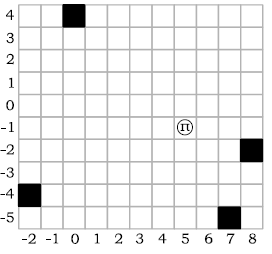 Nhà máy đang thử nghiệm -robot trên một lưới ô vuông khổng lồ. Một số ô là điểm sạc (chứa ổ cắm điện). Robot lúc đầu đứng ở một ô. Sau khi vận hành, robot sẽ đi qua một số ô, ở mỗi ô một số nguyên dương phút, rồi sau đó sẽ di chuyển sang ô hàng xóm kề cạnh (thời gian di chuyển là không đáng kể). Hãy xác định giá trị lớn nhất có thể của khoảng cách bé nhất từ Robot đến một điểm sạc nào đó sau khi robot vận hành phút. Khoảng cách được sử dụng là khoảng cách Manhattan.
