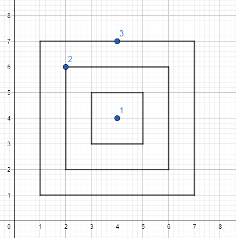 Nói tóm lại, sàn nhà của Giáo sư có thể coi như một hệ tọa độ Oxy rộng vô hạn, trong đó các tờ giấy được biểu diễn như các hình chữ nhật có cạnh song song với trục tọa độ. Mỗi thao tác của được biểu diễn như một điểm trong hệ tọa độ đó. Lưu ý, có thể chấm lên sàn nhà do cậu vẫn còn khá hậu đậu. Dữ liệu đảm bảo các điểm biểu diễn thao tác của là đôi một khác nhau.
