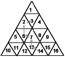 Lưới tam giác là một tam giác đều được chia thành các tam giác nhỏ bằng cách vẽ các đường thẳng song song với các cạnh và cách đều nhau. Các tam giác con trong lưới được đánh số từ trên xuống dưới, từ trái qua phải bắt đầu từ (xem hình vẽ).