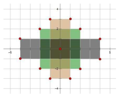 Tính diện tích của phần mặt phẳng bị phủ bởi các hình chữ nhật trên?