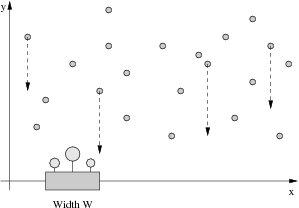 Tất cả các giọt nước mưa đều rơi thẳng xuống dưới (xuống trục Ox) với vận tốc đơn vị dài/ giây. Bạn cần giúp FJ thiết kế một cái chậu hoa chiều rộng đặt dọc theo trục Ox sao cho sự khác nhau giữa thời điểm giọt mưa đầu tiên rơi vào chậu hoa và thời điểm giọt mưa cuối cùng rơi vào chậu ít nhất phải là . Những giọt mưa rơi vào cạnh của chậu hoa cũng được tính là rơi vào trong chậu.