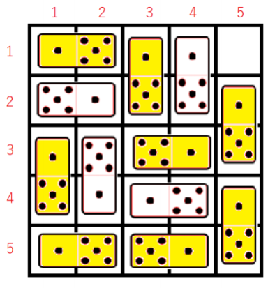 Bờm và Cuội nhìn vào bảng này và nghĩ về tất cả những nhiệm vụ tuyệt vời có thể nghĩ ra từ bảng xếp hình domino này. Một ý tưởng ngay lập tức nảy ra với họ. Với cách đặt các ô domino trên một bảng hiện tại, thì có thể di chuyển được bao nhiêu quân domino từ vị trí ban đầu của chúng đến vị trí khác, hay có bao nhiêu quân domino có thể thay đổi vị trí?