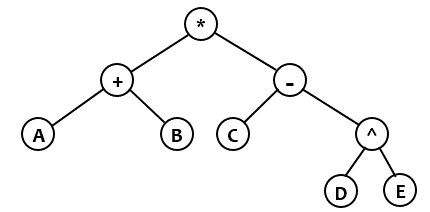 Với mọi biểu thức số học gồm phép toán hai ngôi +, -, , /, ^ ở dạng hậu tố (RPN – ký pháp đảo ngược Ba Lan), ta có thể xây dựng một cây nhị phân tương ứng. Ví dụ với biểu thức hậu tố: AB+CDE^- (mỗi toán hạng là một chữ cái Latinh) thì cây nhị phân tương ứng là như sau: