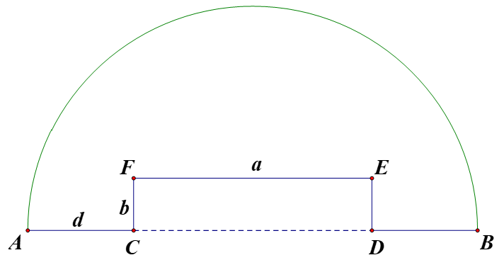 Một cái hồ bán nguyệt có hình dạng là nửa hình tròn đường kính khuyết đi hình chữ nhật . Biết (đơn vị: ). Tính diện tích mặt hồ (đơn vị: ).