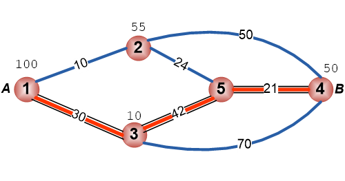 Nước của Rôn có thành phố, đánh số từ đến nối với nhau bởi đường hai chiều, mỗi con đường nối một cặp hai thành phố khác nhau và mỗi cặp thành phố có không quá một con đường nối trực tiếp. Rôn ở thành phố , người bạn - ở thành phố . Qua thông tin mà bạn bè và internet cung cấp Rôn biết danh sách thành phố có bán đồng tiền này và giá bán ở mỗi thành phố. Internet cũng cho biết chi phí đi từ thành phố tới thành phố nếu hai thành phố này có đường nối trực tiếp.