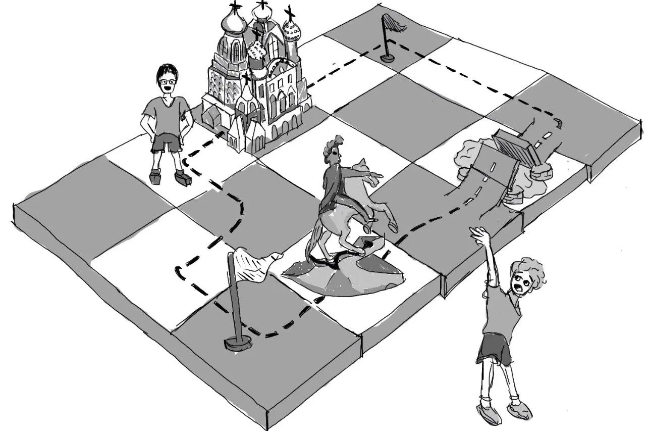 Các bạn nhỏ bắt đầu hành trình từ ô , muốn đến ô , và sau đó quay trở lại điểm xuất phát. Ngoài ra, trong thành phố có điểm tham quan, nằm ở các ô , và họ phải ghé thăm tất cả các điểm này.