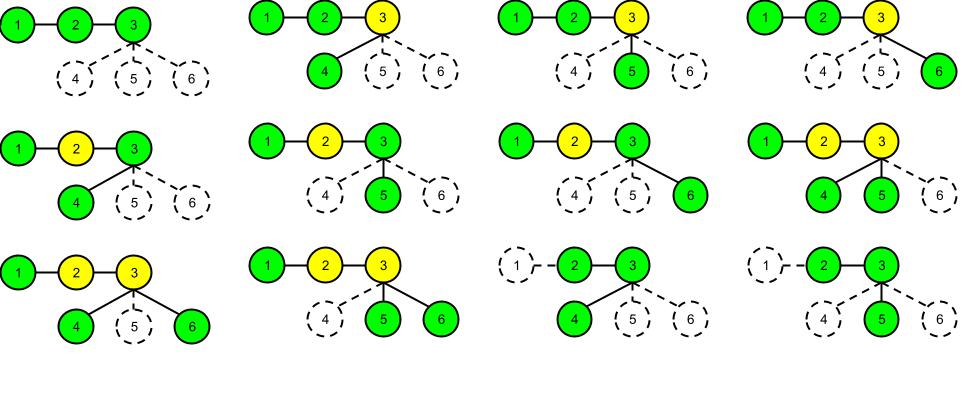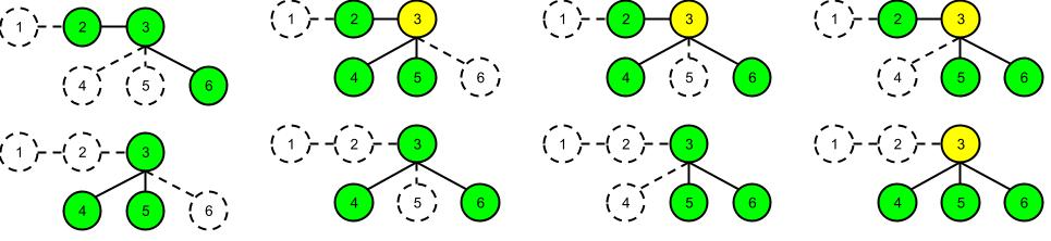 Sau khi vẽ xong, GS. PVH chọn ra đỉnh phân biệt trên cây và tô các đỉnh này bằng màu xanh lá cây. Tiếp theo đó, GS lại tiếp tục tô màu vàng vào những đỉnh mà GS coi là "xung yếu". Một đỉnh được GS coi là "xung yếu" khi và chỉ khi đỉnh này không được tô màu xanh lá cây; và nếu xóa đỉnh này ra khỏi cây, sẽ có hai đỉnh nào đó vừa được tô màu xanh lá cây không thể đi tới nhau nữa.