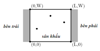 An và Bình là hai nhân viên phụ trách ánh sáng của nhà hát lớn Hà Nội. Công việc của họ là điều khiển ánh sáng cho các vở kịch. Sân khấu được xem như một hình chữ nhật kích thước , trên sân khấu có đèn chiếu sáng đặt ở vị trí khác nhau, sau mỗi cảnh An và Bình phải thay đổi lại trạng thái bật/tắt của các đèn trên sân khấu cho phù hợp với cảnh tiếp theo. An và Bình đã thống nhất, An sẽ đi bật những đèn đang tắt mà cảnh tiếp theo cần sáng, còn Bình sẽ đi tắt những đèn đang sáng cần phải tắt cho cảnh tiếp theo. An có tốc độ di chuyển là , Bình có tốc độ di chuyển là .