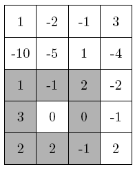 Cho lưới ô vuông kích thước dòng và cột, các dòng được đánh số từ tới từ trên xuống dưới, các cột được đánh số từ đến từ trái sang phải. Ở mỗi ô có ghi một số nguyên . Phải lựa chọn một hình chữ nhật có cạnh song song với cạnh của lưới (kích thước mỗi chiều ) và tổng các số trong các ô thuộc biên là lớn nhất.