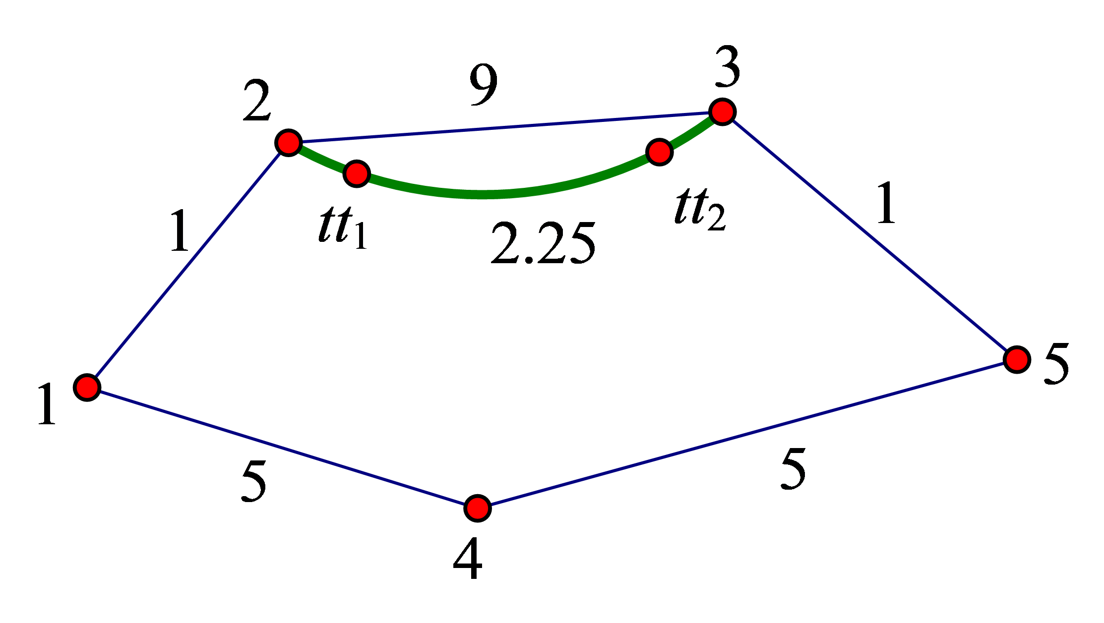 Ta gắn hai thiết bị tăng tốc vào kênh truyền giữa máy và máy , thời gian truyền trên kênh này giảm xuống còn . Lúc này đường truyền là đường truyền nhanh nhất với thời gian là .