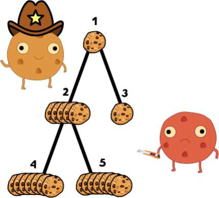 Một trò chơi ăn bánh quy như sau: Có hai người chơi, chơi luôn phiên nhau. Có một cây gồm đỉnh, tại mỗi đỉnh có đặt số bánh , thời gian để ăn hết một cái bánh tại đây là , thời gian để di chuyển từ đỉnh cha đến nó hoặc ngược lại là , người chơi A đi trước và cố gắng ăn được càng nhiều bánh càng tốt và quay trở lại gốc bằng đường cũ nhưng không được sau thời điểm định sẵn. Người chơi B đi sau và cố gắng ngăn người A ăn được nhiều bánh bằng cách cắt đường đi từ vị trí đỉnh người A đang đứng đến đỉnh con của . Trò chơi sẽ kết thúc khi người A đi xuống đỉnh lá của cây. Lúc đó người A có thể ăn thêm bánh khi quay trở lại gốc của cây theo đường cũ nếu còn thời gian.