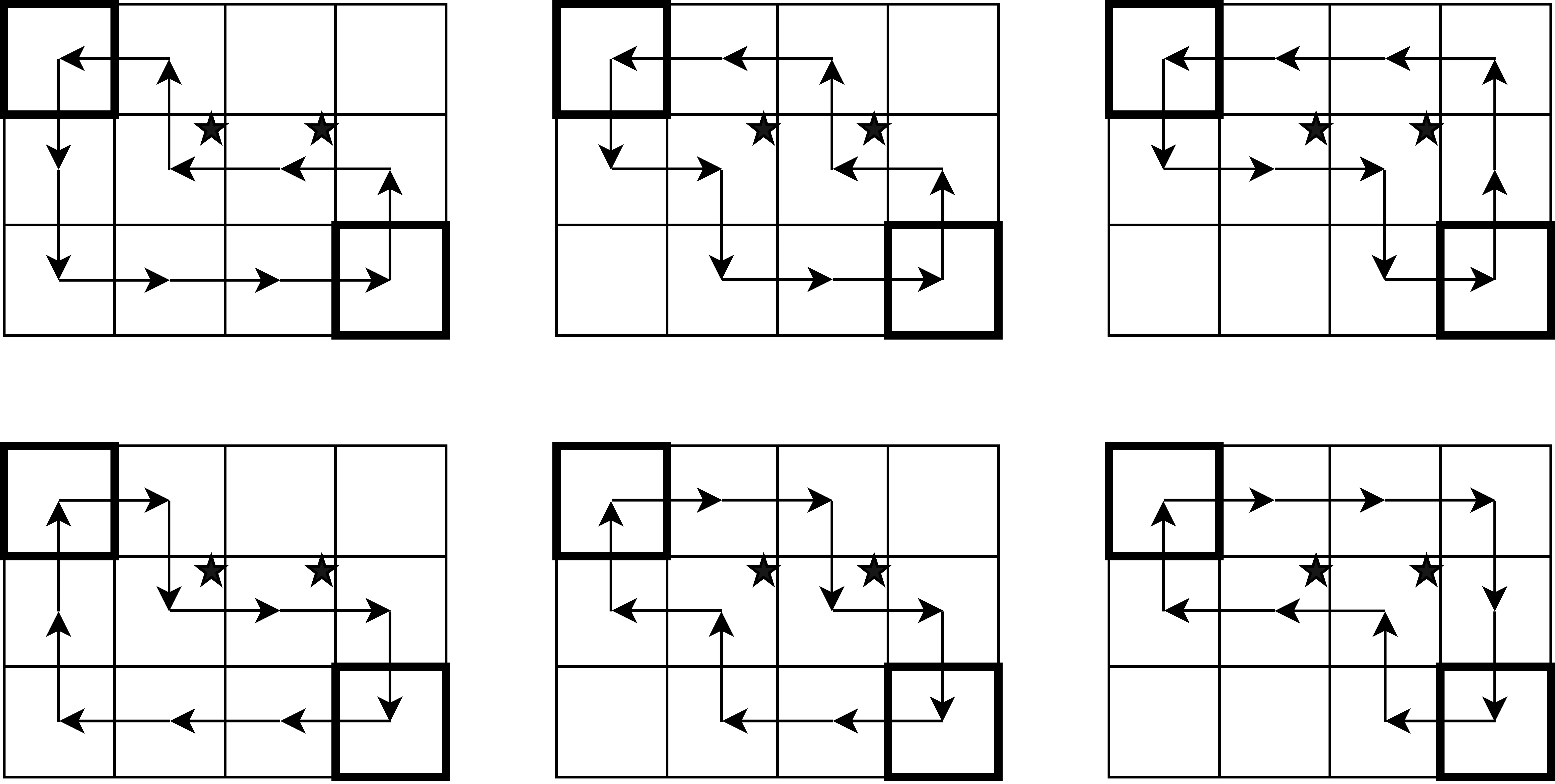 Họ có thể mất một phút để di chuyển từ ô đến một ô kề cạnh , nếu chúng kề nhau về cạnh, tức là thỏa mãn . Rõ ràng, để hoàn thành toàn bộ tuyến đường cần ít nhất phút, và chúng ta chỉ xem xét các tuyến đường có độ dài đúng bằng khoảng thời gian này.